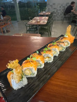 Sushi com arroz, gergilim e ova de massagô por fora e algo na parte interna, com tempurá de camarão e leve toque de cream cheese. CONTÉM LACTOSE.