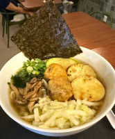 LAMEN COM CALDO A BASE DE FRANGO, COM FINAS FATIAS DE CHYASHYU, QUE É CARNE DE PORCO COZIDA E MAÇARICADA. ACOMPANHA ALGA WAKAME, OVO COZIDO, CEBOLINHA E LEGUMES SALTEADOS.