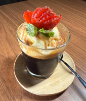 GELATINA DE CAFÉ, ACOMPANHA SORVETE DE CREME E CALDA DE DOCE DE LEITE.