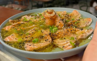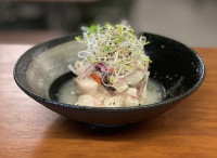 Peixe branco de época marinado no suco de limão, cebola roxa, coentro e leve toque de pimenta dedo de moça.