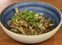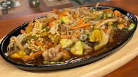 PRATO JAPONÊS COM INSPIRAÇÃO OCIDENTAL. TIRAS DE CARNE BOVINA, COGUMELOS E CEBOLA. COZIDO EM MOLHO DEMI-GLACÊ COM TOQUE ORIENTAL. ACOMPANHA ARROZ E OVOS MEXIDOS.
