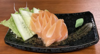 FINAS FATIAS DA PARTE MAIS GORDA E NOBRE DO SALMÃO COM MOLHO ARTESANAL DA CASA.